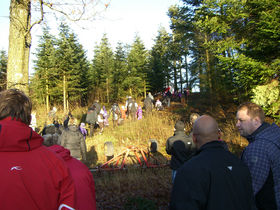 65 børnehavebørn, søskende og forældre var ude og gå en tur i skoven sammen med julemanden, for at finde hans sæk med julegodter. Den havde drillenissen, som til daglig driller børn og pædagoger i børnehaven, nemlig gemt i skoven. Da sækken var fundet, delte julemanden poser med pebernødder ud til alle børnene. Efter endt sækkejagt, blev der hygget i Vedstedskovhus, med hjemmebagt kage, saftevand og kakao. Til sidst indtog børnene, med stor jubel, den nærliggende naturlegeplads.