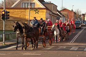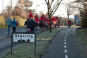 STØVRING: Det lignede godt nok lidt, men det var ikke rensdyr der kom til byen. Det var en stor flok nissepiger på deres heste og ponyer fra Rebild Sportsrideklub. De var blevet indbudt af Handelsstandsforeningen til at lave optog rundt i Støvring by lørdag den 13. december.