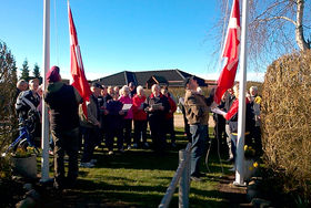 SULDRUP: Tirsdag den 12. april 2016 i strålende solskin afholdt Suldrup Petanque standerhejsning med 49 deltagere. To af medlemmerne hejste flagene og efterfølgende sang man flagsangen.