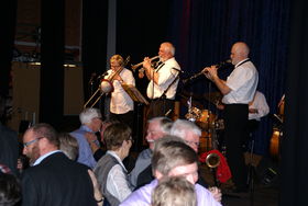 Nyligt afdøde Arne ”Papa Bue” Jensen og hans Viking Jazzband mindedes orkesteret ved at spille nogle af Papa Bues mest kendte numre, hvilket satte stemningen yderligere i vejret.