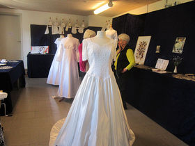 Særudstillingen med brudekjoler, tilbehør, tørret brudebuket, brudebilleder, sange m.m. blev beundret.