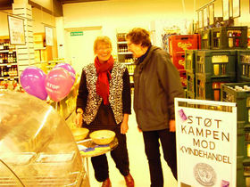 STØVRING: Soroptimisterne i Himmerland var lørdag den 6. marts på gaden, hvor der blev solgt lilla sløjfer. I bl.a Brugsen i Støvring var der opstillet en lille bod – og der var god opbakning til dette projekt.