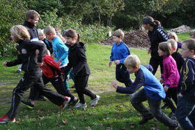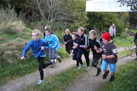 Eleverne fra 2. klasse i fuld firspring ved løbets start.