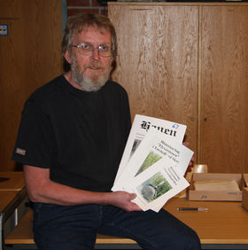 Niels Nørgaard Nielsen fortalte om det mangeårige arbejde, der ligger bag bogen om Flyverstenen i Torstedlund Skov.