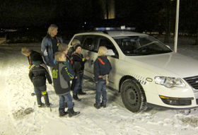 Der blev dog også for de mindste spejdere lidt tid til at se nærmere på politibilen, der holdt i gårdspladsen, for nu den var der, så ville det jo være dumt ikke at kigge på den.