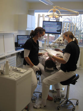 Klinikrum med tandlæge Lene Rolsted og klinikass. Ann Elgaard.