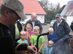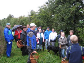 Efter en pragtfuld efterårsdag, begyndte regnen præcis kl. 16, men det afskrækkede ikke de tilmeldte, som mødte talstærkt op med paraplyer, regntøj og kurve under armen (havde man ikke en selv, så lånte man bare en af Sørens).