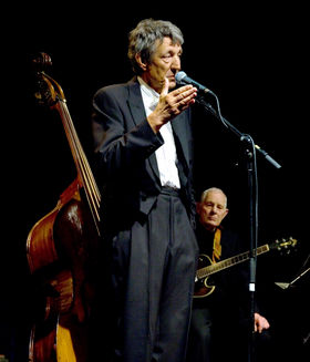 STØVRING: Jesper Klein har været en morsom mand i mange år, men han er også en meget musikalsk mand. Sammen med Anders Errboe fra Østjysk Musikforsyning underholdt han torsdag aften et veloplagt og grinende publikum i Stubhuset med swingende jazz og masser af morsomme indslag.