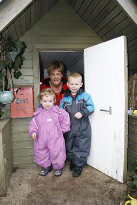 Ane Lene Mølbak sammen med 3-årige Victoria og 3-årige Peter, der råbte om hjælp, da Victoria kom til skade. Foto af Martin Hald Jacobsen.