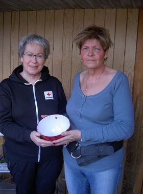 Rebild Røde Kors lokalafdeling ved førstehjælpsinstruktør Lisbeth Stenstrop Jensen har også påskønnet Ane Lenes flotte indsats. Hun fik på en blæsende forårsdag overrakt Røde Kors Skålen. ”Den kan jeg putte noget i til børnene”, udbrød hun og var meget taknemmelig og overrasket over opmærksomheden.