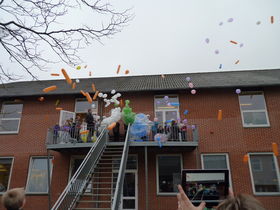 Masser af balloner gik til vejrs for at markere afslutningen på læsebåndets afslutning.