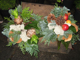 Blomsterdekoratør hos Ravnkildes Planteskole, Charlotte, anvender udelukkende naturmaterialer i kranse og dekorationer. Hun bruger både nordmann- kork- og nobilisgran, som alle har en god holdbarhed som dekorationsmateriale. Materialerne er altid friskklippede, så de har en flot frisk farve. Vær miljøbevidste med juletræerne. Man dyrker dem uden brug af gødning og sprøjtevæsker. Kom og se Charlottes kreative udvalg i kranse, dekorationer m.m. og kom i julestemning.