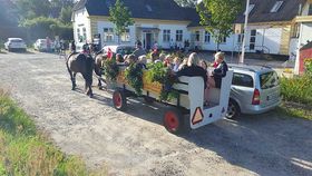 Men før de spændte børn på Guldbæk friskole og de mindst ligeså spændte forældre kunne bænke sig i fælleslokalet og begynde at få afdækket alle disse spørgsmål gik en fantastisk tradition forud. Tanken om at blive hentet i hestevogn og eskorteret af en lang kortege af børn og voksne til fods, på cykel og i bil har nok gjort det noget lettere for børnene at svinge det rigtige ben først ud af sengen den 10. august selv efter er lang sommerferie med en noget anden døgnrytme. Transport og ankomst til skolen var således en mindeværdig oplevelse og en statsmand værdig – og noget der nok kunne fugte øjenkrogen hos især forældre til de nye skolebørn.