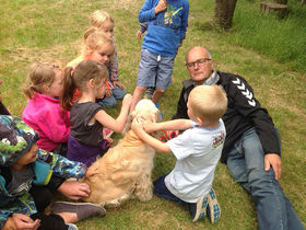 Tumlehøj fik også besøg af en sød hund, som nød at blive kælet for.