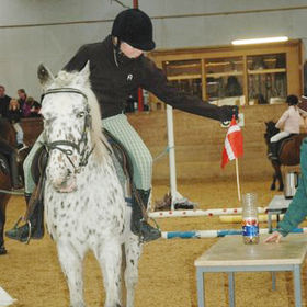 Elevrytter Mette Møller og elevponyen Bonnie til ponygames.