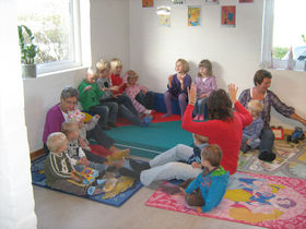 AARESTRUP: Torsdag den 16. september var det landsdækkende "små synger sammen"-dag. Det er en dag hvor alle pædagoger, dagplejere, medhælpere, børn og alle andre opfordres til at synge, enten sammen med andre eller i den enkelte institution. I vuggestuen Bifrost foregik det ved at vi fik besøg af børnehaveklasselederen og seks børn fra børnehaveklassen på Gregers Krabbe Friskolen som vi bor nabo til. Det var det store hit for såvel store som små. Der blev sunget mange velkendte sange og børnene fra børnehaveklassen kunne lære vuggestuebørnene nye sjove vers til de kendte sange. Vuggestuebørnene var meget optaget af deres gæster. Man håber de kommer igen en anden dag.