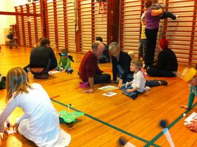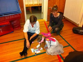 Forældrene blev vist hen til hver deres plads, som nu var et sommerfugle-bo. Herefter fortalte de voksne sommerfugle Jessica og Line, at hver sommerfugl nu skulle flyve rundt i gymnastiksalen og samle nektar fra blomsterne. Nektaren var en brik til et puslespil og når al nektaren var samlet, var der et billede af børnehaven Sommerfuglens logo.