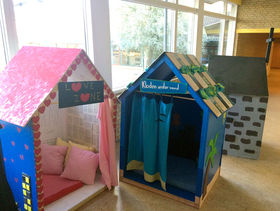 Således har 7. årgang i skoleåret 2014/15 produceret læsehuler til brug på skolen. De har en størrelse, så elever op til 10-11 år kan sidde to personer og læse deri.