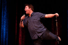 Med komikerne var konferencier Christian Henriksen, som er en nordjysk stand up komiker fra Hjørring. Før hver af de tre komikere gik på scenen, varmede Christian publikum op med jokes om myrepatter, hjemmefryse-vortesæt og en hel del pornosnak.