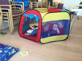 Årets tema var form og farver, så rundt omkring i lokalerne var der anbragt bl.a. en boldhule fyldt med flere hundrede bolde i forskellige farver og et læse-hyggehjørne med tæpper, puder og bøger, hvor man kunne finde ro og mulighed for fordybelse. Og der var opstillet en aktivitetsbane med mange forskellige former og farver, hvor også motorikken kunne udfordres.