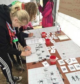 Der arbejdes koncentret med de kinesiske tegn og betydning.