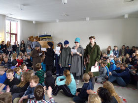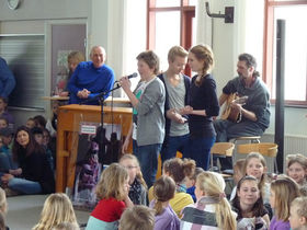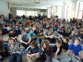 Alle skolens elever i var samlet i skolens samlingssal for at søsætte skolens nye tiltag omkring trivsel.