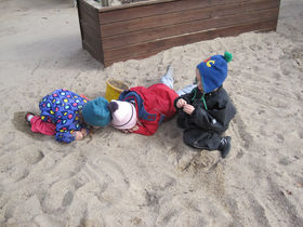 Her efter påske er de første børn startet. Nogle har haft forældre med og andre har klaret det selv fra første færd. Vi har set, at børnene har taget denne udfordring med stort gå-på-mod. Børn og personale til Børnehuset Kronhjorten har egen stue, men de fleste af de nye børn har søgt ud i hele huset og har leget der også.
