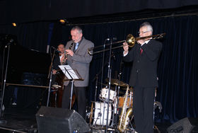 Orkesterets internationale sammensætning gav mange små sjove sprogforvekslinger, Thomas L´Etienne, der kommer fra Hamburg, introducerede numrene på dansk, eller noget der lignede og med hjælp af orkesterets øvrige medlemmer forstod indholdet heri. Helt anderledes var det når han lod klarinetten eller altsaxofonen udtrykke sit budskab, nemlig forrygende jazzmusik. På flygelet tryllede Phil Parnell på tangenterne. Phil, der kommer fra New Orleans, er blevet så forelsket i Danmark, at han nu bosætter sig i Nørholm uden for Aalborg. Ham vil vi sikker komme til at høre mere til i fremtiden. Bassen blev håndteret af Torben Bøtker Bjørnskov, næsten lokal, fra Skanderborg og trommerne blev slået på af Esben Laub von Lilljenskjold, der kommer fra Hjørring og med rødder i nordjysk jazz. Udover at arranger den årlige vintertourné med Lillian Boutté, nu for 16.ende gang, spiller Finn Burich fra Haderslev trombone og gav også en prøve på sin jazzsang. Et meget dygtigt og sammenspillet orkester.