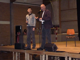 Skoleleder på Skørping Skole Peter Hansen og lærer i kinesisk Xubin Zhu bød velkommen til kinesisk nytårskoncert i Skørping Idrætscenter tirsdag den 15. februar.