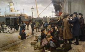 Edvard Petersen: Udvandrere på Larsens Plads, 1890.