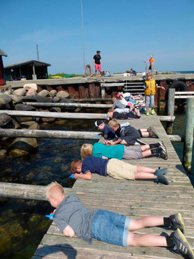 De 60 børn og deres lærere og pædagog drog afsted tidligt onsdag morgen, og forud ventede et spændende program på den smukke og spændende Limfjordsø.