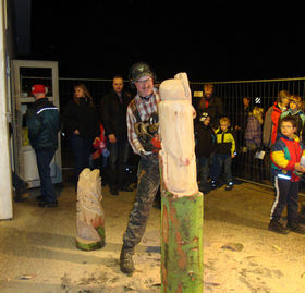 Skovløber Preben Palsgård underholdte både fredag og lørdag med at skære figurer ud i træ med motorsav.
