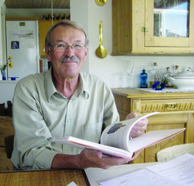 Her er Vagn Gaarde ved at forberede sig til turen, hvor han efter besøg på lokalarkiverne og ved at læse forskellig litteratur har fået genopfrisket sit kendskab til alle de steder, som Turistforeningens bustur vil komme til.