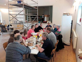 Et velfortjent hvil for de mange frivillige, som har ydet en stor indsat med at renovere forsamlingshuset.