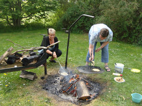 De friske dagplejer sat gang i bålet.