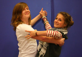 De to elever på billedet er David Amtoft 1.a og Eva Bisgaard 1.f. De ses under indøvelse af “Den allersidste vals”.