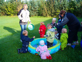 SØNDERUP: Dagplejen havde fuld gang i alle sanserne på græsplænen ved FDF-huset onsdag formiddag. Børnehaven “sommerfuglen” var inviteret til dagens arrangement.