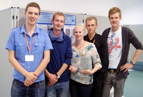 Vindergruppen fra Aalborg Universitet: Kasper Bendix Johnsen, Andreas Pagh Rasmussen, Heidi Guldborg Møller, Anders Christian Kaa og Hjalte Holm Andersen.