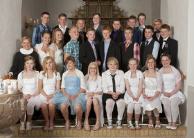 SULDRUP: Øverste række fra venstre: Theis Sindal Hansen, Jesper Bach Nielsen, Jonas Spanggaard, Mads Christian Brandt, Niels Mark Andersen, Troels Yding Pedersen (har fulgt konfirmandundervisningen), Thomas Gravgaard Askjær, Jacob Sloth Hansen.