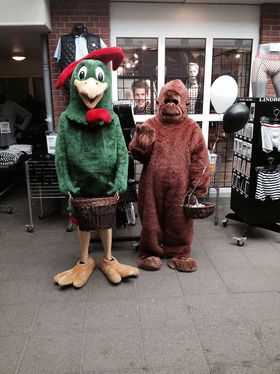 STØVRING: Dagen igennem var der masser af aktiviteter, hvor aben ”Rynke” og hanen ”Cornelius” blandt andet gik rundt med smagsprøver og hvor der var popcorn, balloner og slush ice til børnene.