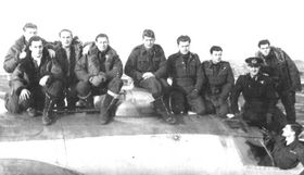 Billedet er taget kort før den skæbnesvangre flyvning. Hele besætningen har taget opstilling ovenpå flyet, en Liberator B 24 bombemaskine. Flyets kommandør, hollænderen Nicodéme Guilonard (sort uniform med kasket) ses som nr. tre fra højre. To pladser mod venstre for ham ses Kenneth Emery, Ann Jordans far.