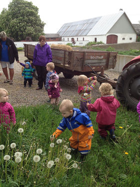 Børnene blev vist rundt på gården, hvor man kunne kæle for gederne, kaniner, høns og ikke mindst en glad hund, Smut. Men der var også mulighed for at fodre hønsene og samle æg.