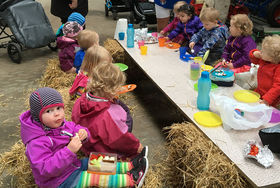Børnene fik også - sammen med deres dagplejer - en tur i vognen efter traktoren på halmballer.